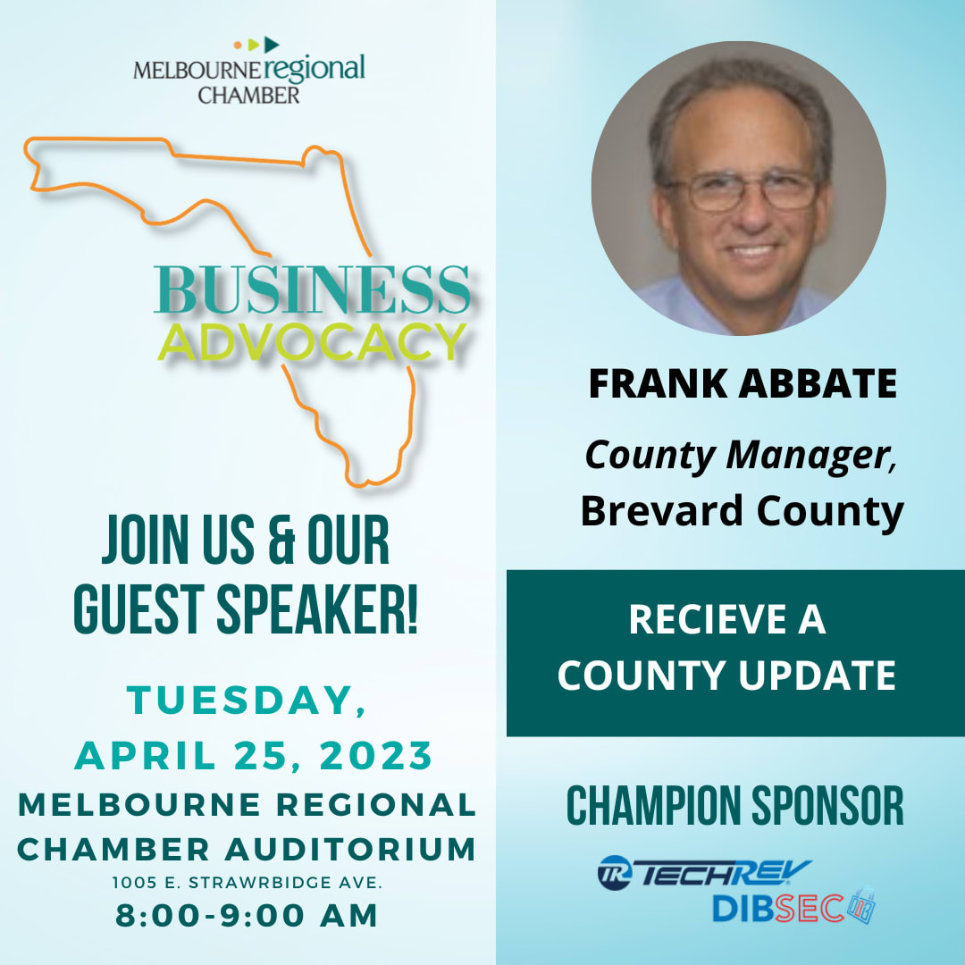 Join our Business Advocacy Committee for a county update from County Manager, Frank Abbate. Having served in the public sector for over 34 years, Frank Abbate’s professional career is anchored by 26 years as Brevard County’s Human Resources Director. Upon moving to Florida in 1989, Abbate was admitted to the Florida Bar.