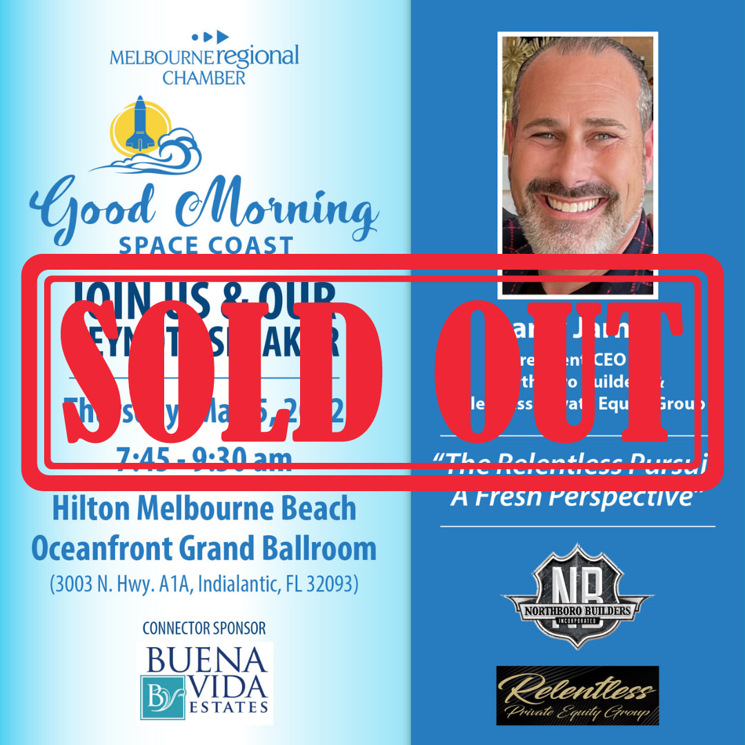 SOLD OUT! Please join us to hear from keynote speaker, Larry Jarnes, President & CEO of Northboro Builders Inc. and Relentless, as he discusses real estate and development on the Space Coast and how to create new opportunities.