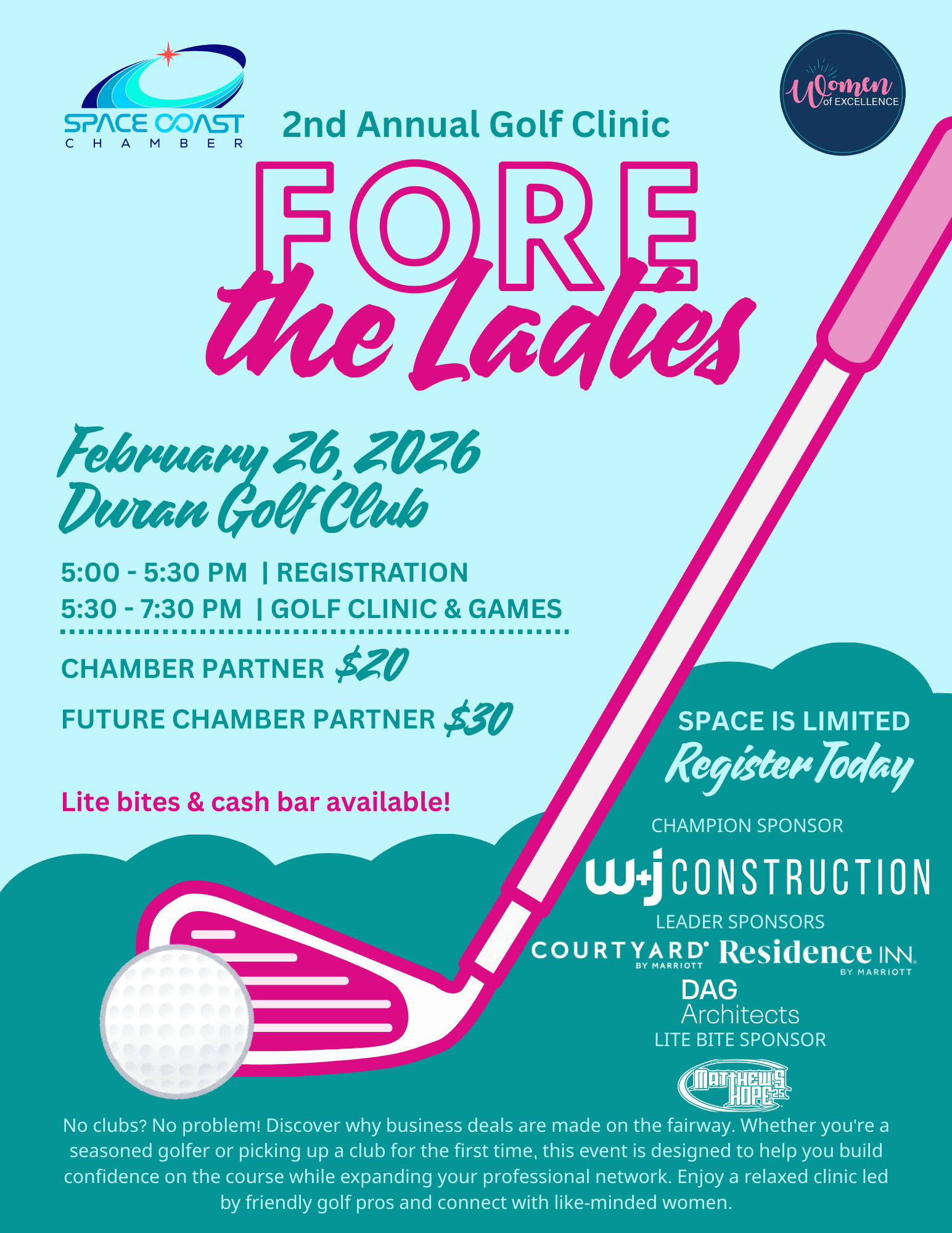 Join us on Thursday, February 26, from 5:00–7:30 PM at Duran Golf Club for the 2nd Annual “Fore the Ladies” Golf Clinic.